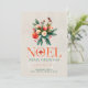 Ce design de carte est rempli de couleur et le joyeux bouquet de fleurs Noel—Noël avec deux mignons Robin Rouge. Script élégant et typographie serif avec texte personnalisable pour votre message de voeux. Carte de vacances vintage.