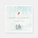 Diese wunderschöne Hochzeitsserviette besticht durch eine schneeblaue Szene mit immergrünen Kiefern und einem roten Kardinal. Passen Sie mit dem Namen und dem Hochzeitsdatum der Braut und des Bräutigams an. Ideal für Weihnachten-, Berg- und Winterhochzeiten. Um die ganze Snowfall Einladung Suite behalten scrollen oder klicken Sie auf Agape.