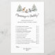 Dieses Winter-Waldtiere Baby Dusche Mummy oder Daddy Spiel ist perfekt für eine geschlechtsneutrale Woodland Babydusche oder Sprinkle. Das klassische rustikale Design besticht durch eine winterliche Szene mit Kiefern und Waldtieren. Die Kalligraphie ist dunkelgrau mit kontrasteinfacher Typografie, auf einem weißen Hintergrund. Personalisieren Sie das Spiel mit dem Namen der werdenden Mutter und dem Datum. QSD118