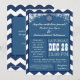 Moderne winterblaue Zickzack Muster Schneeflocke Einladung Hochzeit. Ideal für eine Hochzeit in den Wintermonaten! Diese Einladung funktioniert hervorragend für eine Winterhochzeit ohne übermäßige Weihnachten- oder Urlaubsatmosphäre!