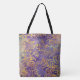 Große, komplett bedruckte, gebürstete Polyester-Totbeutel mit einem Bild von lila, goldener und blauer Batik mit Blattmuster. Sehen Sie sich die gesamte Bali Retreat Tote Bag Kollektion in den SPEZIELLEN TOUCHS an| Gastgeschenken