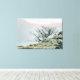 Ein einsamer frostbedeckter Bergbaum mit Schneewolken am Himmel. Wales UK.