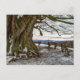 Winterbaum und Bänke. Schnee umgibt Baum und Bänke entlang des Weges frontiernow,com.