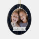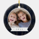 Ein wunderschönes, zweiseitiges Weihnachtsgeschmack mit einem beliebten Foto auf jeder Seite, in einem runden Rahmen, auf einem dunkelblauen, mit Kiefern bepflanzten Hintergrund. Personalisieren Sie das Jahr mit einer benutzerdefinierten Beschriftung auf der Vorderseite in handgeschriebener Schrift, und fügen Sie das Jahr auf die Rückseite.