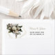 Eleganter Winter Hochzeitsreportadressen-Label mit Elfenbein-Rose-Peony Grünpflanzen und goldene geometrische Formen mit einem schicken Kalligraphie-Skript. +++++++++++++ Für verwandte Hochzeitsartikel lesen Sie bitte die gesamte Sammlung unter dem Hauptbild.