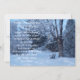Die schöne Fotografie einer von Bäumen umgebenen Bank lädt zu einer phantastischen Hochzeit ein. Die vom Frost bedeckten Bäume schaffen ein schönes Winterwunderland.