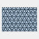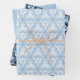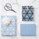 Ein Set aus drei dekorativen Wrackpapier-Blättern in einem weichen, fest blauen Winterblau, einem nächtblauen, wirbelfarbenen Muster und einem schneeblauen Schneedruck. Die Drucke zeichnen sich durch kompakte, kontrastfarbene Schwirlmuster aus, die eine raffinierte Geschenkpräsentation ermöglichen.