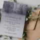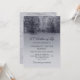 Elegante Einladung zum Gedenkgottesdienst mit einem Foto einer Winterbrücke mit schneebedeckten Bäumen. Die Rückseite ist mit Marmor ausgelegt.