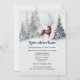Ein stilvolles und elegantes Design von wunderschönen winterfarbenen Tannenbäumen, die in einen schneebedeckten Hintergrund mit einem schneebedeckten Berggipfel verblassen, vor dem ein einsamer Hirsch mit majestätischen Antlern stehend ist. Wenn Sie im Winter heiraten, haben eine Winterwunderland, rustikale Wälder oder Waldtheorie Hochzeit, dann ist diese Abbildung perfekt für Ihre Bedürfnisse. Der hellgraue Hintergrund kann in eine beliebige Farbe Ihrer Wahl geändert werden, und die Formulierung ist personalisiert, um Ihren Anlass zu Anzug.