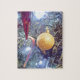 Ein digitales Gemälde eines Kiefernbaumes, das für ein Winterfestival mit Ziergegenständen, Lichtern und Bonbons dekoriert ist.