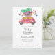 Weihnachtsbaum auf roten Auto Babydusche Einladung. Matching-Elemente verfügbar.