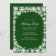 Helle weiße Schneeflocken auf tiefgrünem Hintergrund schmücken diese Feiertagseinladung. Falls Sie weitere Artikel in dieser Sammlung benötigen, kontaktieren Sie uns einfach unter prettyfancyinvites@gmail.com mit Ihrer Anfrage.