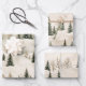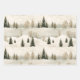 Eine friedliche Winterlandschaft mit schneebedeckten Hügeln mit verstreuten immergrünen Bäumen und Laubbäumen mit nackten Ästen. Schneeflocken fallen sanft ab und schaffen eine weiche, beruhigende Atmosphäre. Die Farbpalette ist in Weiß-, Grau-, Grün- und Brauntönen gehalten.