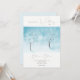 Hochzeitseinladung mit Aquarelllandschaft in blauen Tönen. Im Zentrum stehen zwei Bäume mit schneebedecktem Frost, die Äste der Bäume bilden ein dünnes Netz gegen den Himmel und erstrecken sich im Winter zaubern zu einem Idyll für viele Jahre. Winterfrische zarte Hochzeitseinladung. Winter Freshness Collection