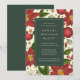 Laden Sie Kollegen oder Kunden ein, die Saison mit diesen eleganten Einladungen für Ihr Unternehmen Weihnachten Party zu feiern. Design zeigt Ihre Corporate Event-Details in klassischer Elfenbeinschrift auf sattem Jägergrün, vor einem festlichen gemusterten Hintergrund im Winter mit roten Poinsettia-Blume, grünem Blattwerk und winzigen weißen Blüten. Passen Sie diese elegante Einladung mit Ihrem Firmennamen und Veranstaltungstyp an und machen Sie sie zum idealen Ort für Weihnachtsfeiern, Weihnachtsfeiern, Partys für Ihren Urlaub und vieles mehr.