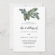 Dieses Wintergrün ist die Hochzeit der Einladung perfekt für eine elegante Hochzeit. Das moderne Herbst- oder Winterdesign besticht durch seine elegante Aquarell-Vegetation und die dunklen Oliven-Blätter mit einem rustikalen Urlaubsstil.