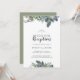 Diese wintergrüne Hochzeitsempfehlung lädt zu einem eleganten Ereignis ein. Das moderne Herbst- oder Winterdesign besticht durch eine schlichte Aquarell-Vegetation und düstere Oliven-Blätter mit einem rustikalen Urlaubsstil.