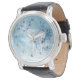 Eine Uhr mit einem Bild eines majestätischen Hirsches im Winter. Ein eisblau gefilterter Hintergrund verleiht diesem Foto einen kalten Winterlook mit magischem Flair. Ein edles Hirsch steht auf einem Hügel mit winterlichen Kiefern im Hintergrund