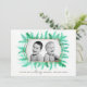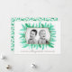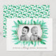 Winter immergrünes Blattwerk Aquarell Grün Weihnachtsfotoschablone Karte. Personalisieren Sie mit Ihrem eigenen Familiennamen und Ihrem Foto. Original Aquarellkunst von Sarah Trett.