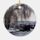 Eine fotografische Schneeszene mit Schmalschiffen auf dem gefrorenen Kanal. Die im Vereinigten Königreich als Schmalboote bekannten Kanalboote wurden ursprünglich zur Beförderung von Gütern im ganzen Land eingesetzt. Sie werden heute hauptsächlich zur Freizeitgestaltung genutzt und ziehen Menschen aus aller Welt an, um unsere ländliche Umgebung zu genießen. Diese Boote sehen sehr hübsch mit ihren hellen Kabinen aus, die traditionell blau, rot oder grün sind. Blume und Schlossdesigns schmücken auch die traditionelleren Boote.