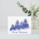 Weihnachtsbild mit Winterlandschaft und Schneeflocken-Dekoration in Blau