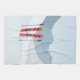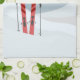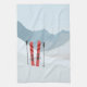 Abstrakte Winterlandschaft mit Panoramablick auf die Berge, rote Skiausrüstung, Pfad und Himmel