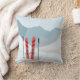 Abstrakte Winterlandschaft mit Panoramablick auf die Berge, rote Skiausrüstung, Pfad und Himmel