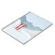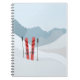 Abstrakte Winterlandschaft mit Panoramablick auf die Berge, rote Skiausrüstung, Pfad und Himmel