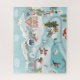 Winterlandschaft Weihnachtsdörfliche Illustration mit niedlichen Winterbildern mit Schneemann, Lebkuchenhaus, Fuchs, Kaninchen, anderen Tieren und Leuten Eis Skaten, in der Nähe eines Feuers, Spaß mit Weihnachtsbaum, Geschenke und Wald, mit blauen pastellfarbenen Winterwunderland Töne. Eine skurrile, kleine Weihnachtsdörfer-Landschaft.