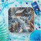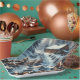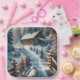 Personalisierte Weihnachts-Party-Teller. Ein hübscher Aquarellstil ist die Kunstdarstellung einer Blockhütte im Schneewald. Hübsch für Weihnachten oder Feiertage.