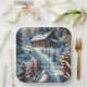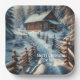 Winterlogmelkabine an einem schneebedeckten Weihna Pappteller