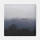 Eine Winterlandschaft mit schneebedeckten Bergen und Nebel.