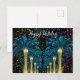 Fantastische Palmen mit Lichtern, Festsaison, Schnee und Sterne fallen auf den schwarzen Hintergrund.