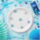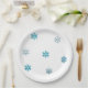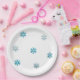 Papierteller für Babydusche mit Schneeflockenmuster vorne.