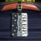 einige Kaiser-Pinguine, schneebedeckte Landschaft, Eis, Schneeflocken ganz stilisiert für diesen Wintersport-Gepäckanhänger