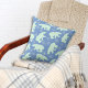 Dieses hübsche und einzigartige Kissen zeichnet sich durch einen handgezeichneten, hellblauen Eisbären und ein Schneeflockenmuster auf himmelblauem Hintergrund aus. Niedlich! Beide Seiten des Kissens haben das gleiche Bild.
