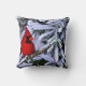 Ein wunderschöner Roter Kardinal, der zwischen schneebedeckten Winterhalbkugeln ruht.