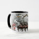 Winterszene mit Weihnachten des Vaters und seinen Rentieren. Eine erwachsene Tasse würde ein nettes Geschenk für Geschäftsleute machen.