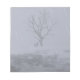Eine kalte und windige 3D-Landschaft im Winter, geschaffen in Vue. Auf einem Hügel weiß mit Eis und Schnee, gegen einen stürmisch grauen Himmel mit Regen oder stetig fallendem Schlitten steht ein einsamer, nackter Ahornbaum mit einer Holzbank darunter.