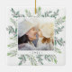 Festig und elegant in hellgrünen Farbtönen, unser Winterweihnachtsgeschmack mit seinem beliebten quadratischen Foto (eins auf jeder Seite), das von den skizzierten botanischen Blätter gerahmt ist. Personalisieren Sie mit Ihrem Familiennamen auf der einen Seite und das Jahr auf der anderen Seite.