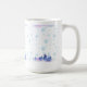 Ruhiger Wintertag mit sanften Schneeflocken, die in der Tasse des Kaffees fallen