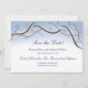 Wohnung Save the Date Karte für die Hochzeitssuite Romantic Winter Snow Tree Branches. Das Design besteht aus Aquarellästen mit Kiefernnadeln, die einen Bogen um marineblaue blaue Wörter bilden. Schnee auf einem blauen Himmel ist auf der Rückseite dargestellt. Stellen Sie sich eine Schlittenfahrt durch den Winterhafen vor.
