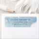 Winterthematisches Rücksendeetikett mit atemberaubendem, abstrakt staubblauen Aquarelldesign, verziert mit kleinen Schneeflocken.