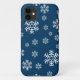 Fesselnde Gestaltung mit weißen Schneeflocken auf tiefblauem Wintergrund. Verwenden Sie die Option Form Factor, um dieses Bild auf andere Hüllen des Geräts anzuwenden.