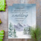 Hochzeitsdesign mit Aquarell, das eine verschneite Berglandschaft und Pinienbäume in Blau- und Grautönen darstellt. Der Text kann leicht für ein einzigartiges Design für Ihren besonderen Tag personalisiert werden.Eine schicke Wahl für elegante Winterhochzeiten in Berg oder Wald
