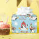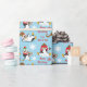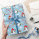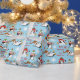 Drei bezaubernde kleine schwarz-weiße Pinguine erleben Winterspass auf diesem niedlichen Weihnachtspapier. Ein Pinguin macht Schneebälle. Eine andere trägt einen grünen und rot gestreiften, herzförmigen Bonbons. Eine andere ist, auf einem Stück Eis zu gleiten. Alle Pinguine tragen Wintermützen in leuchtenden Farben. Einige rote oder weiße Schneeflocken treiben um sie herum. Ihr eigener Text ist in Rot, und alles wird auf einem eisblauen Hintergrund platziert.