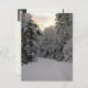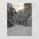Winterstraße Postkarte. Der Winter in New Hampshire zeigt schneebedeckte Bäume an einer schneebedeckten Straße.