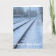 Ein winterliches Foto einer schneebedeckten Bahn. Text vorne: Happy New Year!