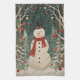Dieses skurrile Urlaubskunstwerk besticht durch einen freundlichen Schneemann, der stolz in einem zauberhaften, verschneiten Wald stehend ist. Der Schneemann mit klassischem Top-Hut und einem kräftigen roten Schal ist von einem Hain aus stilisierten, nackten Bäumen gerahmt, die mit hellen roten Ziergegenständen geschmückt sind. Ein Gefühl des festlichen Wunder entsteht durch den fallenden Schnee und die leuchtenden Sterne im tiefen grünen Himmel. Das Stück erinnert an den gemütlichen Charme und bezaubernden Geist eines Winterwunderlandes und besticht durch eine klassische Urlaubsszene mit einer Touch von Volkskunst-Flair.