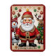 Ein festliches Design mit Schneemann, Weihnachtsmann, Reh und einem dekorierten Weihnachtsbaum, Set vor einem goldenen, gepunkteten blumigen Hintergrund, das Wärme und Urlaubsmagie hervorruft. "Das Originalbild wurde von Meta AI erstellt. AI generierte Kunstwerke. Lizenziert unter CC BY-SA 4.0."